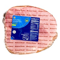猪肉、腌制、火腿 -- 加水、臀部、带骨、瘦肉和脂肪可分离、加热、上下火烤 roasted (Pork, cured, ham -- water added, rump, bone-in, separable lean and fat, heated, roasted) |