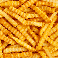 土豆,炸薯条 French fries,crinkle or regular cut (切成波纹型或通常型状),加工过程中加盐,冷冻,烤箱中加热 (Potatoes, french fried, crinkle or regular cut, salt added in processing, frozen, oven-heated) |
